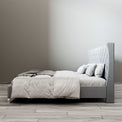 This impressively styled bed makes a bold yet fashionable statement. The bed sits on solid metal legs finished in stainless steel for a touch of luxury. A sleek light grey finish captures a contemporary aesthetic that retains its versatility. Strong and sturdy to give you long-lasting comfort.