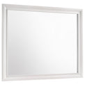Classic yet versatile, this dresser mirror enhances any bedroom with timeless appeal. Designed with a clean, rectangular silhouette, its framed profile introduces elegant dimension and depth. A beveled glass surface adds refined visual clarity, reflecting light beautifully across the room. Built from engineered wood and finished with a protective laminate veneer, this mirror offers both durability and sophistication when paired with a matching dresser or case piece.