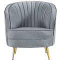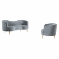| Inspired by a glam version of mid-century artistry, this three-piece sofa set offers all that’s needed to begin a romantic living space motif. Give a living room or family room its best design life with this set built with frames fully encased in solid wood and covered in decadent gray velvet. Vertical channeling on back interiors highlights the iconic kidney shape of its sofa and loveseat and add dimensionality to an extra comfy accent chair. Set atop slender, tapered legs fashioned of gold finish stainless steel, each piece reflects the parlor look of upscale retro furnishings. Set includes one sofa, one loveseat, and one chair. | ||