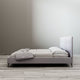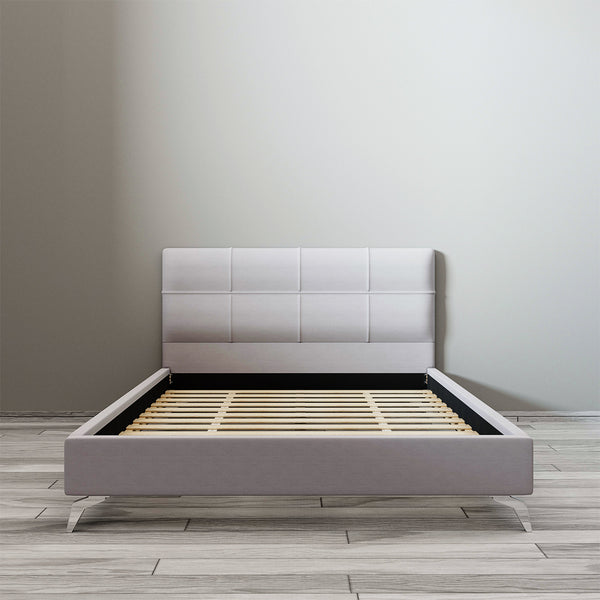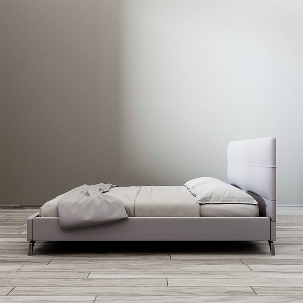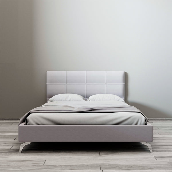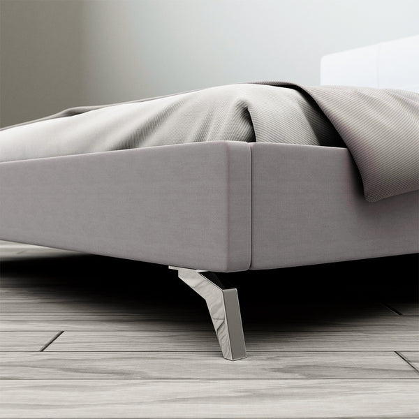 The bed showcases an elegant modern design that combines soft touches with a minimalist aesthetic. Its solid platform build creates a sleek and streamlined appearance. With an elegant light grey finish, this bed captures and effortlessly blends into various interior styles.